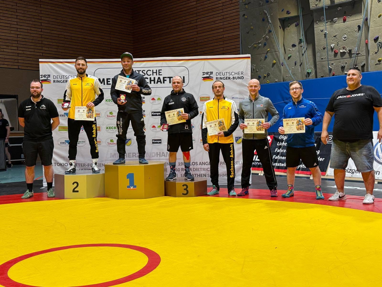 Am Samstag starteten dann die Wettkämpfe im griechisch-römischen Stil. Nun griff auch André ins Geschehen ein. Er erwischte ebenfalls eine mit 11 Sportlern gut besetzte Gewichtsklasse. In seinem Limit bis 70 kg traf er bereits im ersten Kampf auf Sportfreund Marcus Breitschuh vom KAV Mansfelder Land. Beide kennen sich gut und Marcus hatte hier die besseren „Argumente“ und siegte verdient. Die nachfolgenden Kämpfe im Pool konnte André dann gegen Sami Ghabr von der TSG Backnang technisch überlegen und gegen