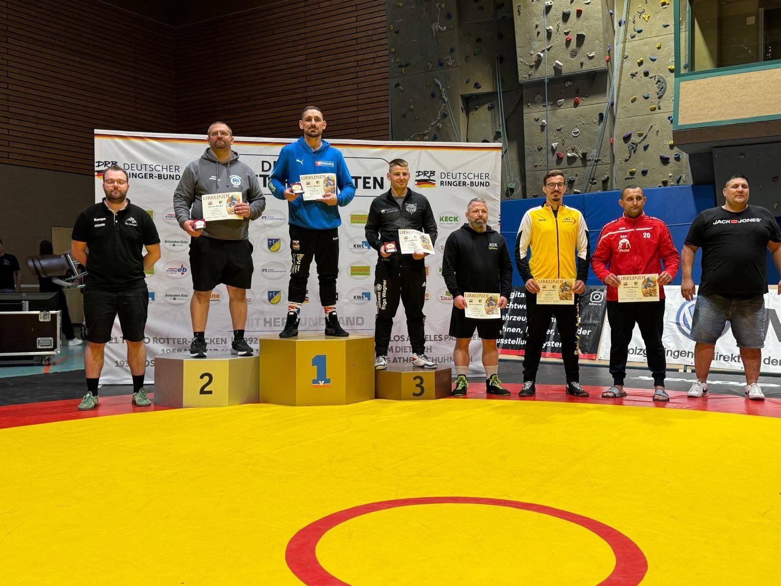 Hier mussten dann gleich Maximilan und Christian ran. Maximilian startete im Limit bis 88 kg und hatte 11 Kontrahenten auf seiner Liste. Eine starke Gewichtsklasse. Gegen seine ersten beiden Gegner aus Hannover und Greiz in seinem Pool fand er nicht das richtige Mittel und schied daher leider aus. Für Christian lief es in seiner Gewichtsklasse besser. Im Limit bis 100 kg musste er sich nach einem Schultersieg gegen Stefan Peters aus Schonung nur Siavash Abdimanesh aus Erlangen geschlagen geben und erkämpfte damit den 2. Platz. Ein toller Abschluss für den ersten Tag.