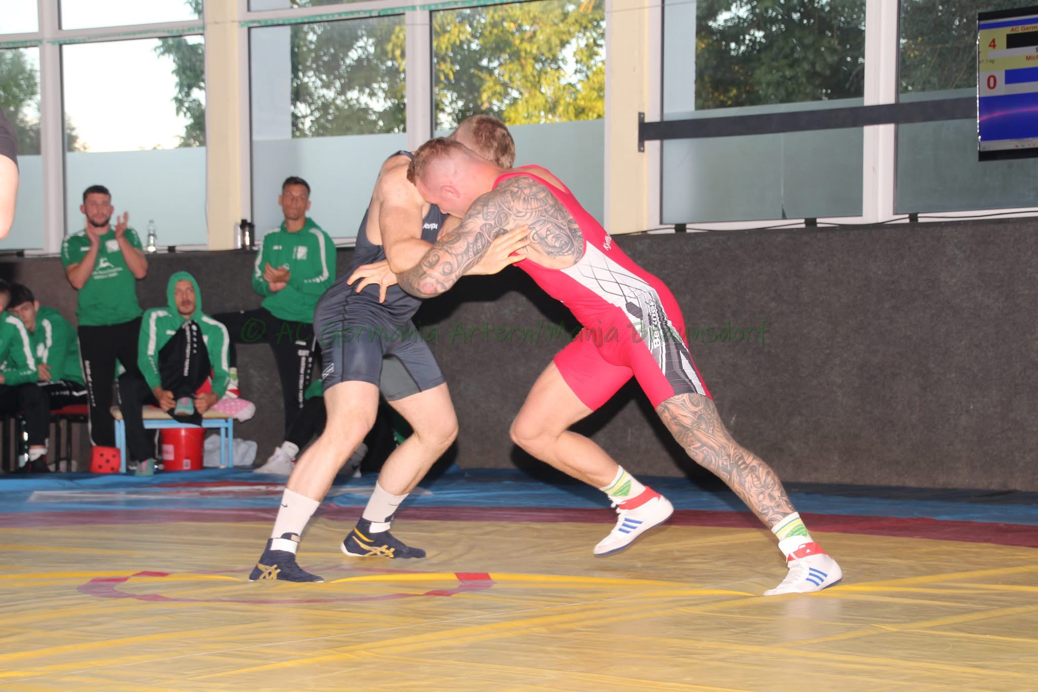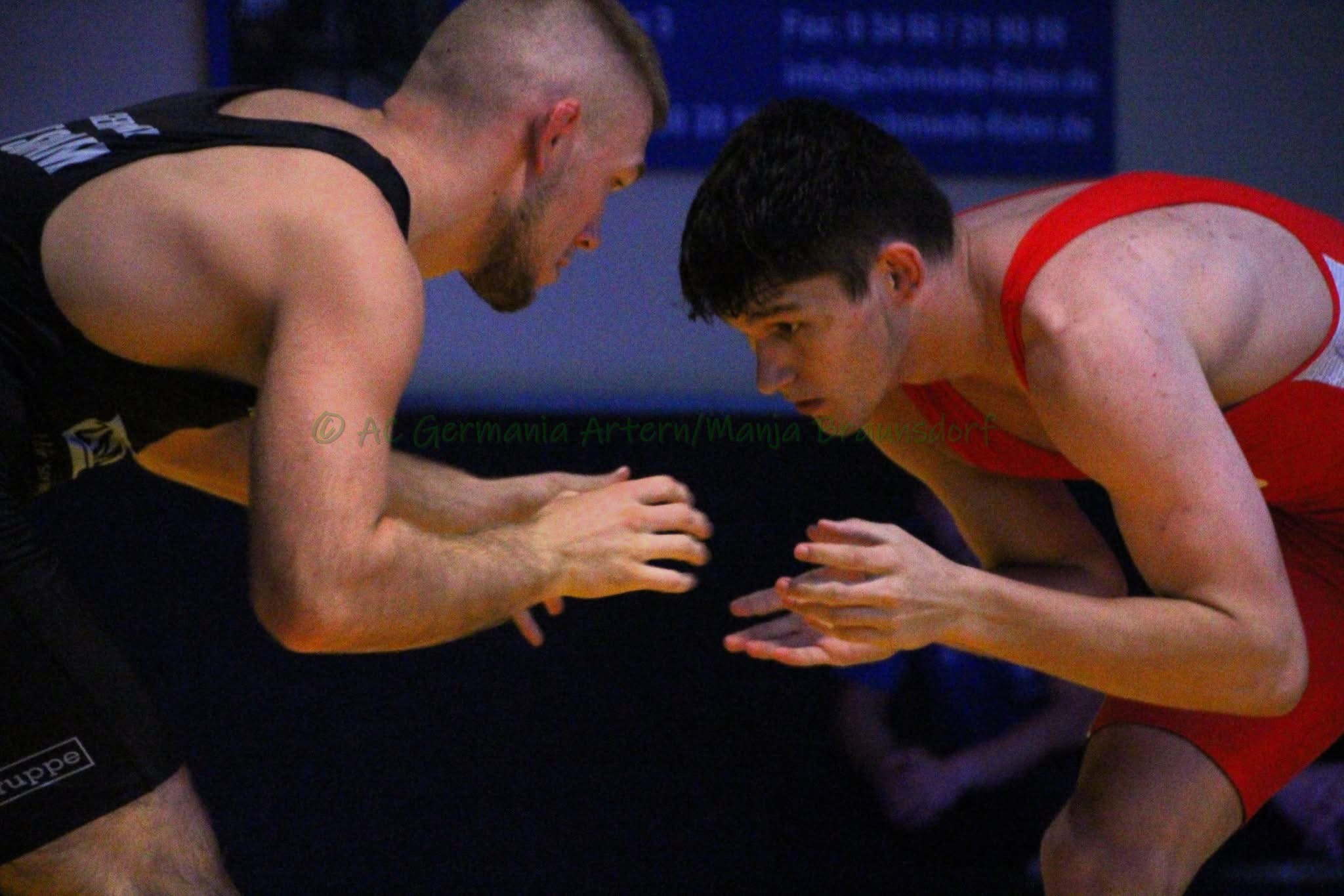 Auch Malte Guthmann gab bei seinem Debüt bei den Arterner Germanen im Limit bis 71 kg Freistil ein klares Statement ab und begeisterte die Zuschauer. Nach nur einer Minute beförderte er seinen Kontrahenten Nicolas Schmidt-Bohn auf beide Schultern.
