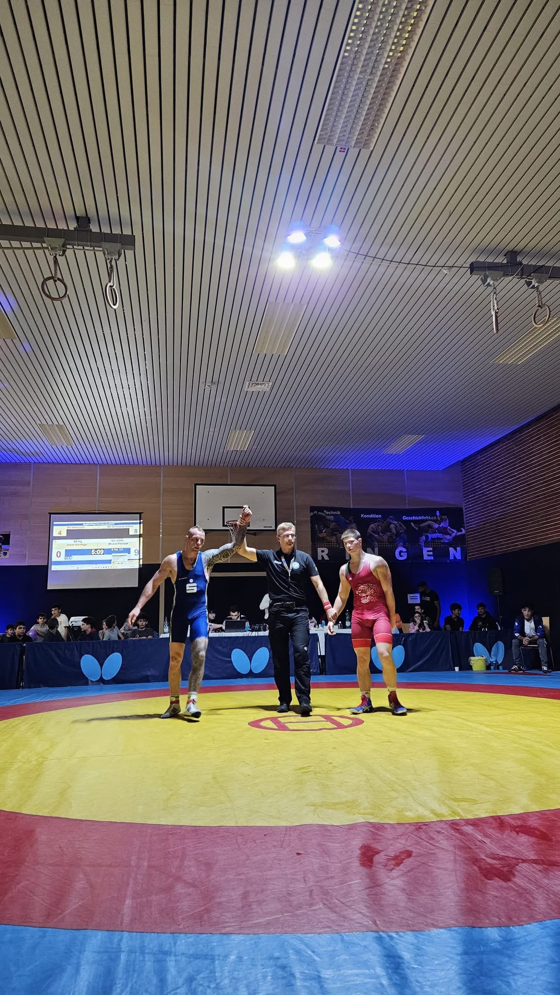 Tim Walther rückte kurzfristig für den erkrankten Dmytro Shkromada ins Limit bis 80kg Freistil auf. Mit schnellen Beinangriffen machte er Pooria Mostafaei das Leben schwer und konnte diesen noch in Runde 1 schultern.