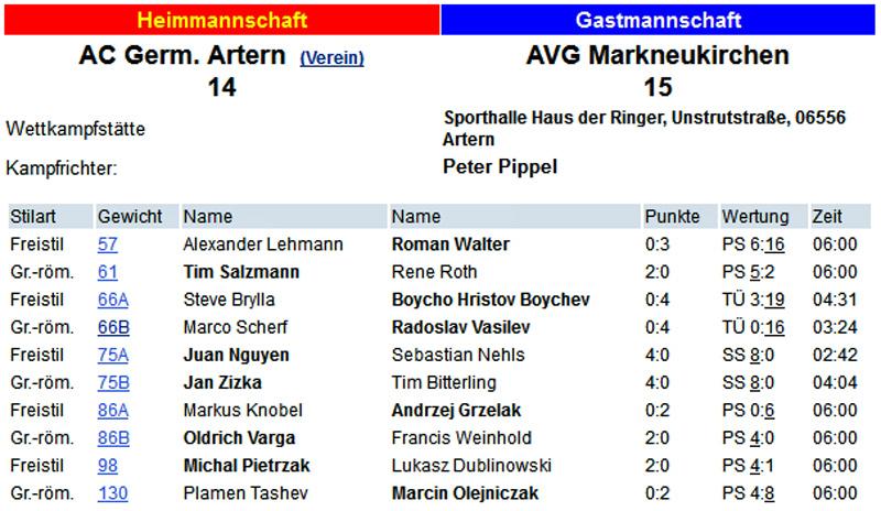 Im Kampf von Neuzugang Plamen Tashev und dem Polen Marcin Olejniczak ging es dann auch neben der Matte so richtig zur Sache, dass Arterner Publikum war mit einigen Entscheidungen des Kampfrichters nicht einverstanden und zeigte dies lautstark. Bei einer Aktion an der Zone wurde eine vielleicht Kampfentscheidende Szene für den Polen und nicht für Plamen gewertet.