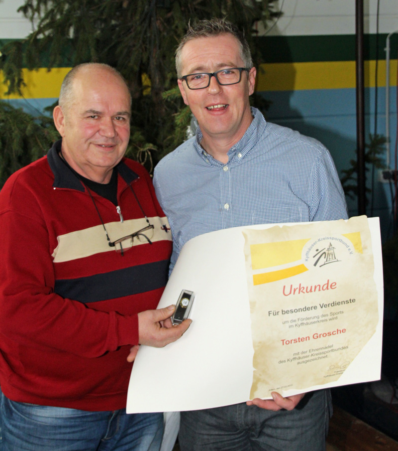 Zur Überraschung von Sportfreund Torsten Grosche wurde der Anlass genutzt um ihn in kleinem feierlichen Rahmen für sein ehrenamtliches Engagement auszuzeichnen. Aus den Händen von Vereinspräsdient Lothar Finke übernahm er die Ehrennadel des Kyffhäuser-Kreis-Sportbundes, mit welcher seine Verdienste bei der Förderung des Sports im Landkreis ausgezeichnet wurden. Zum Mittag löste sich die Gemeinschaft dann auf und alle begaben sich wieder zurück in familiäre Gemütlichkeit und zu den Leckereien auf der heimischen Weihnachtstafel.