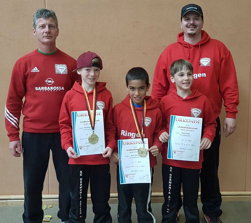Am Wochenende fanden in Braunsbedra die offenen Landesmeisterschaften der D- und E-Jugend im freien Stil statt. Unter den 89 Teilnehmer standen mit Ramin Safari (D/29kg), Noi Getschmann (D/31kg) und Jeremy Kießler (D/34kg) auch drei Youngster des AC Germania Artern.