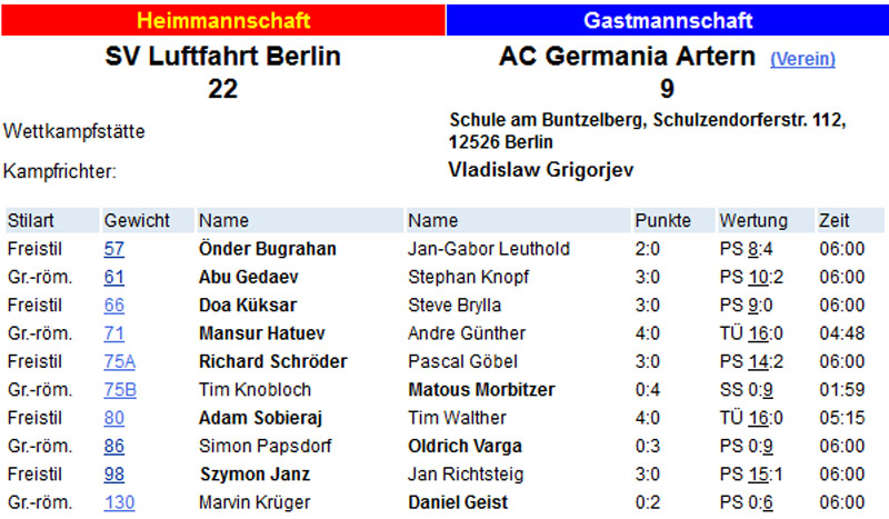 Sicher ist auch diese Niederlage ärgerlich aber wenn man es nüchtern und realistisch betrachtet war auch hier bis auf den einen oder anderen Punkt der vlt. auf den nicht sehr umsichtigen Luckenwalder Kampfrichter geht, nicht mehr zu holen. Ob sich die Germanen von ihrem selbstgesteckten Ziel der Finalrunde bereits vorzeitig verabschieden können wird sich vielleicht schon nächste Woche beim Heimkampf gegen den KFC Leipzig zeigen.