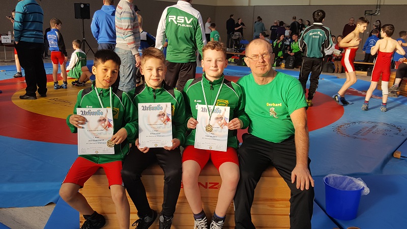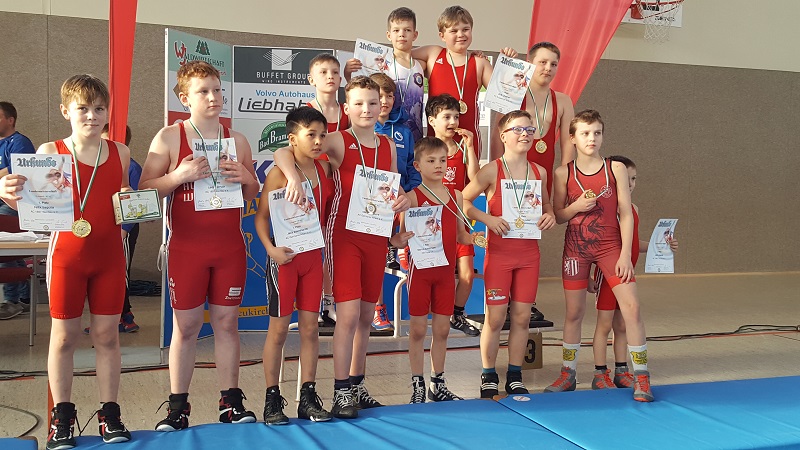 In Markneukirchen (Sachsen) fanden am 24.03.2018 die Landesmeisterschaften der C- und D-Jugend im freien Ringkampf statt.