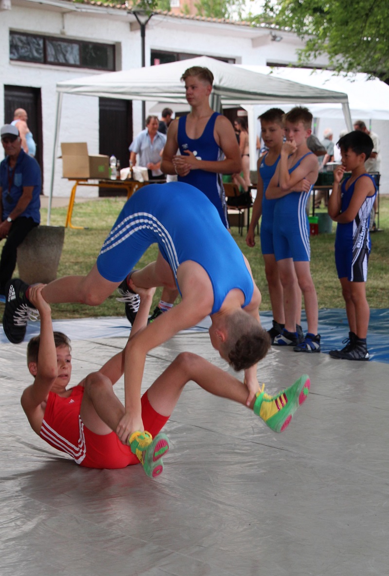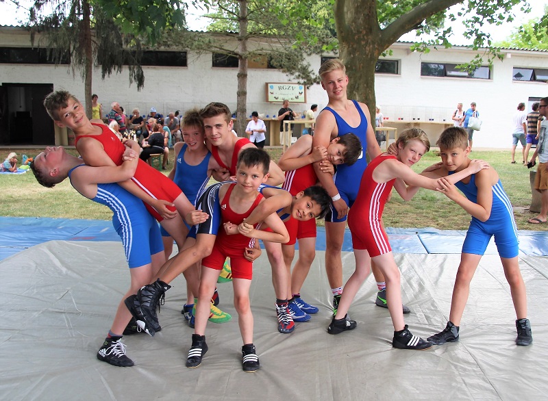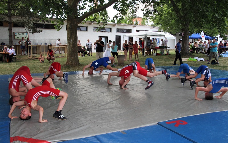 Unter der Moderation von Michael Getschmann und Hauptmoderator Patrick Helm zeigten die jungen Germanen zahlreiche Techniken und sportliche Übungen aus dem Ringeralltag. Die Zuschauer quittierten das Engagement der Jugendlichen mit Aufmerksamkeit und Applaus. Bei dem schönen Wetter blieb auch noch Zeit für einen Sprung ins erfrischende Nass und Spaß unter den Vereinskameraden.