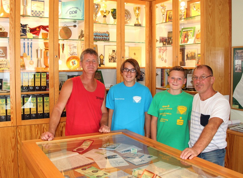 Erstmals seit vielen Jahren können wieder zwei junge Germanen zur Sportschule delegiert werden. Dies war kurz vor Beginn des neuen Schuljahres Grund genug für eine lockere Gesprächsrunde im Ringerhaus in Artern mit den beiden jungen Sportlern. Max Neubert aus Ringleben und Joy-Chantal Kießler aus Gorsleben kamen gut gelaunt zum Interviewtermin. Manja Braunsdorf, selbst mal Internatsschüler und mit Option zur Sportschule nach Halle versehen, hatte viele Fragen an die jungen Ringkämpfer, aber auch an ihre Trainer und die Eltern.