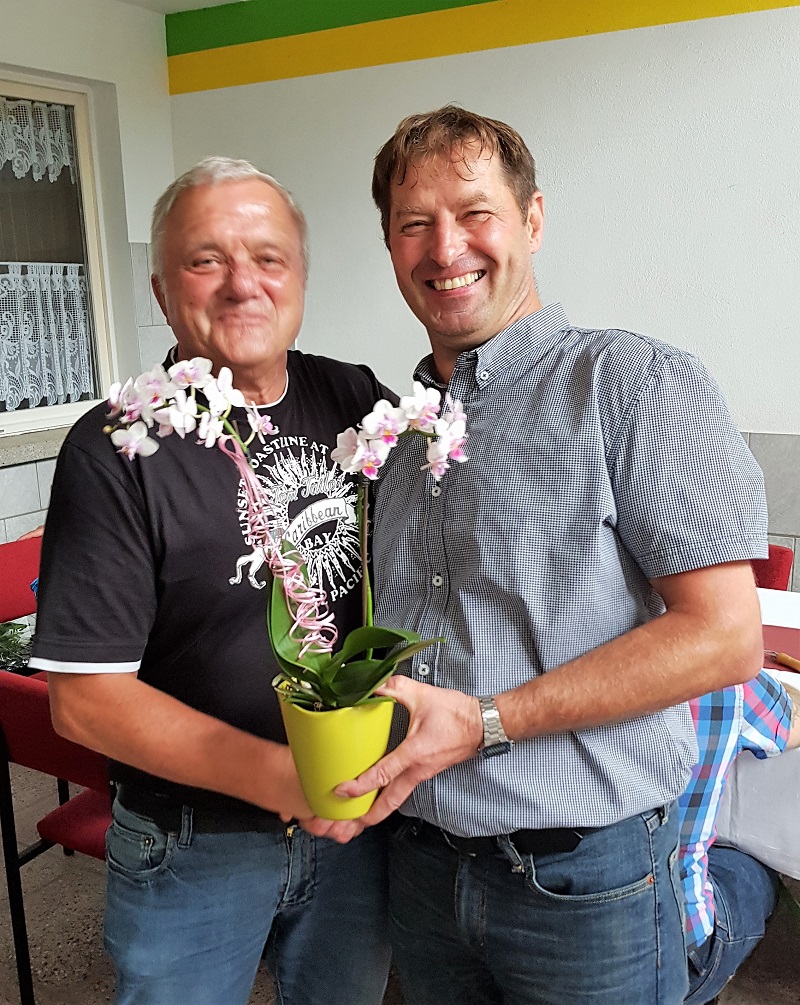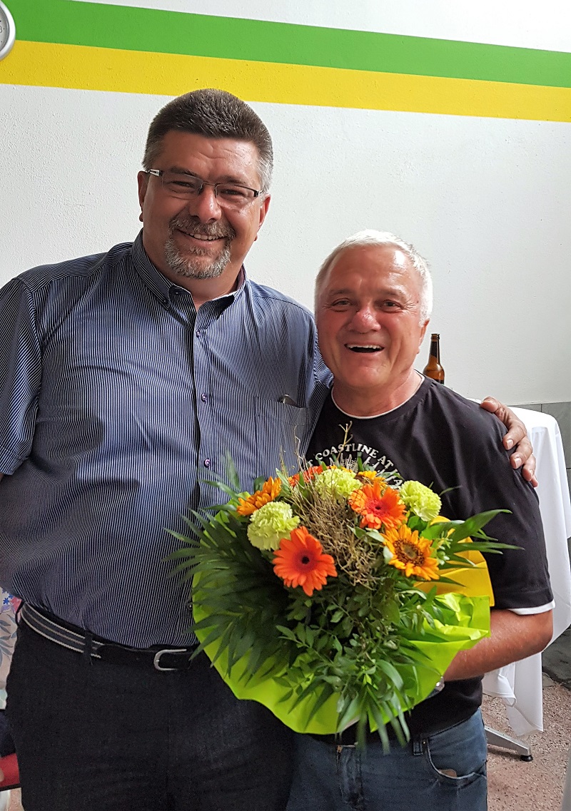 Hilmar sieht man seit einigen Jahren immer in erster Reihe bei den Wettkämpfen als treuen Fan. Peter hält sich da vielmehr im Hintergrund und hilft mit handwerklichem Geschick. Ihn kennt man darüber hinaus eher als Rettungshelfer im Arterner Sole-Schwimmbad, wo er in den Sommermonaten den Schwimmmeister am Beckenrand seit Jahrzehnten unterstützt. Beide feierten in diesem Monat ihren 70. Geburtstag. Hierzu gratulierte der Vorstand und die Sportfreunde des AC Germania Artern e.V. natürlich von Herzen. Beiden stattete man einen teils überraschenden Besuch ab und überbrachte die Glückwünsche persönlich.