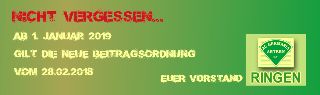 Neue Beitragsordnung des AC Germania Artern e.V. By | 20.01.2019 - 20:17 |24.01.2019 News 2019 >> Beitragsordnung vom 28.02.2018 Bookmark the permalink.