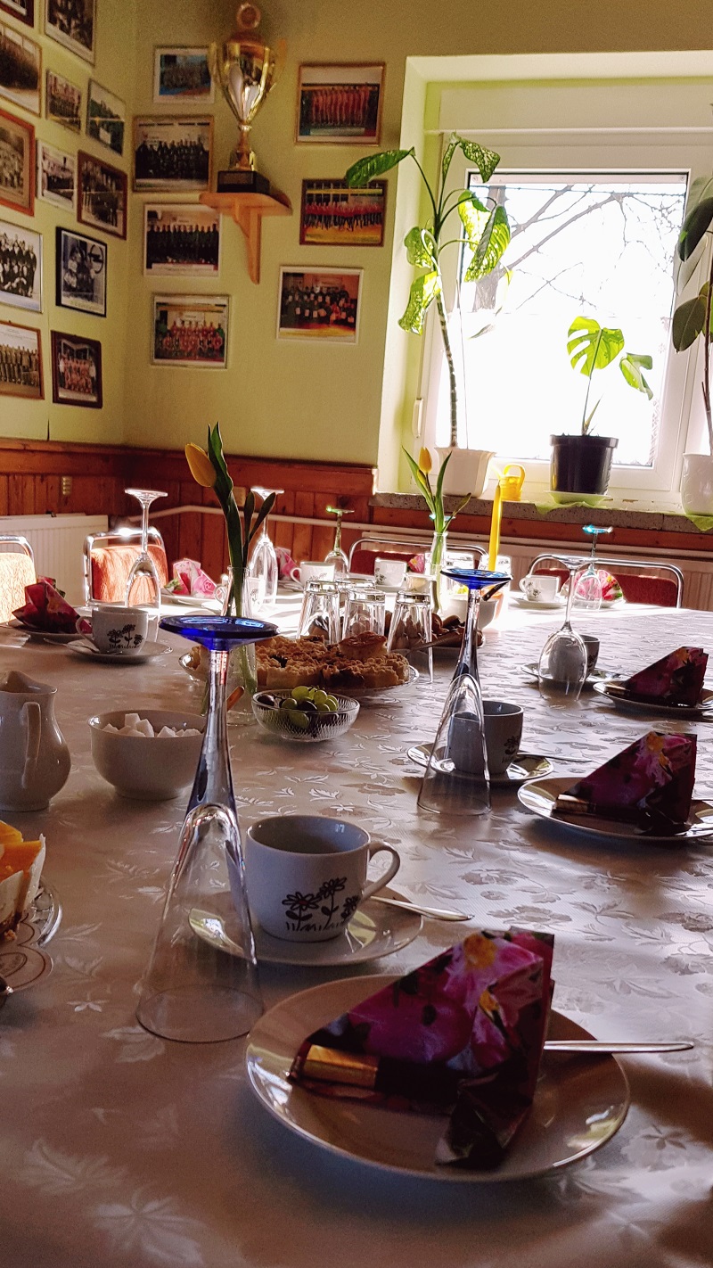 Danach waren die „Mädels“ unter sich… 26 1/2 Frauen waren der Einladung gefolgt. Die Älteste war 89, die Jüngste 8 Monate alt. Gemeinsam wurde gelacht und gescherzt, aber auch in Erinnerungen geschwelgt und Aktuelles besprochen oder einfach mal Vergleich gezogen zwischen Damals und Heute als Ringermutti oder Ehefrau eines Ringkämpfers. Und nach dem Motto „selbst ist die Frau“ war der Tisch im Clubraum festlich durch die Frauen eingedeckt wurden. Häppchen, Obst und süsse Leckereien, sowie so manches Glas Sekt rundeten die Veranstaltung ab.