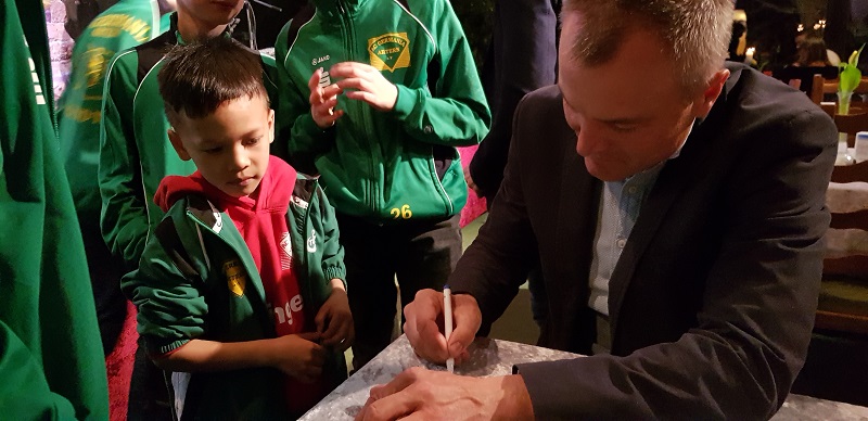 Natürlich war er auch für uns Germanen das Ziel von Klein und Groß. Eine kurze Pause nutzte auch die Germania-Jugend um sich ein Autogramm zu besorgen. Im Gespräch mit Sportfreundin Manja Braunsdorf erkundigte er sich auch nach dem für ihn eher unbekannten Ringkampfsport und dem sportbegeisterten Nachwuchs, welcher gerade bei ihm war. Von Marco Krüger bekam er daraufhin anschaulich die Ringerbrücke und den dazugehörigen Überschlag auf dem Boden neben seinem Tisch erklärt.