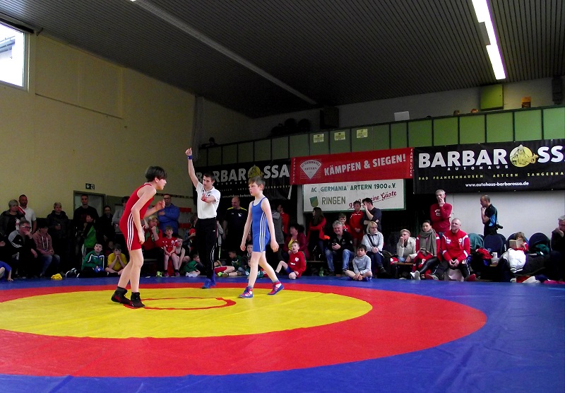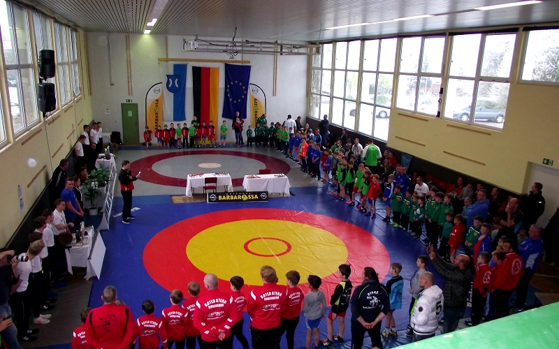75 Sportlerinnen und Sportler aus 13 Vereinen trafen sich zu dem Turnier der Jüngsten im Ringkampfsport. Es war an diesem Tag wie bei den wilden Ameisen, alle rannten hin und her, vor lauter Aufregung darüber, was nun so auf den Matten ablaufen wird.