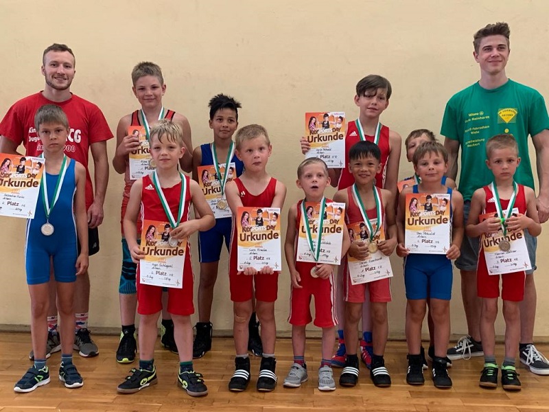 Die jüngsten Sportler vom AC Germania Artern angeführt von Tim Salzmann und Sven Bärnt gingen mit viel Freude und Einsatzbereitschaft zum fairen Wettstreit. Insgesamt starteten für das Team aus dem Kyffhäuserkreis 11 Sportler in 3 Altersklassen im Freien Ringkampf.
