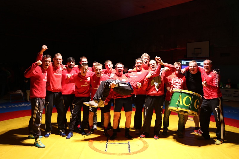 Im ersten Kampf bis 57 kg sollte Milan Altenburg das Schiff gleich, wie Trainer Getschmann sagte, in das richtige Fahrwasser bringen. Milan tat sich gegen den Routinier Martin Rößner in der ersten Halbzeit ziemlich schwer, konnte ihn in der zweiten Hälfte jedoch souverän schultern. Unser sympathischer Pole Michal Pietrzak rückte erneut in die 130 kg Klasse auf. Dort traf er auf Nico Günther, welcher Michal um einen Kopf überragte. Michal, wie gewohnt unbeeindruckt von deutlichen Gewichtsunterschieden oder Körpergrößen kämpfte entschlossen und sicherte mit 15:0 Punkten weitere vier Mannschaftspunkte.