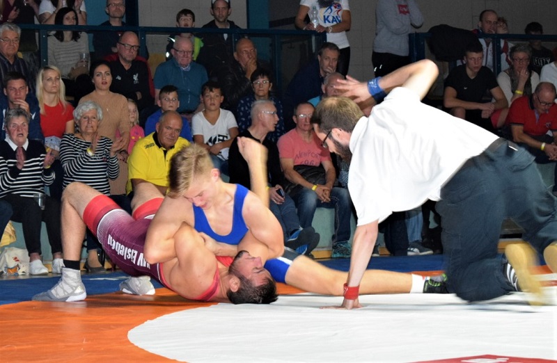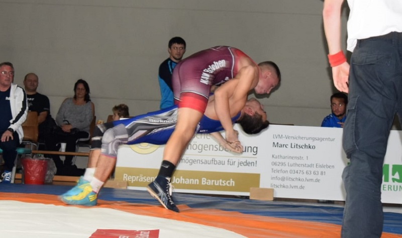 Pascal Göbel hatte anschließend in der Gewichtsklasse bis 80 kg Freistil mit Max Bartel keine Schwierigkeiten und siegte nach nur 53 Sekunden souverän auf Schulter.