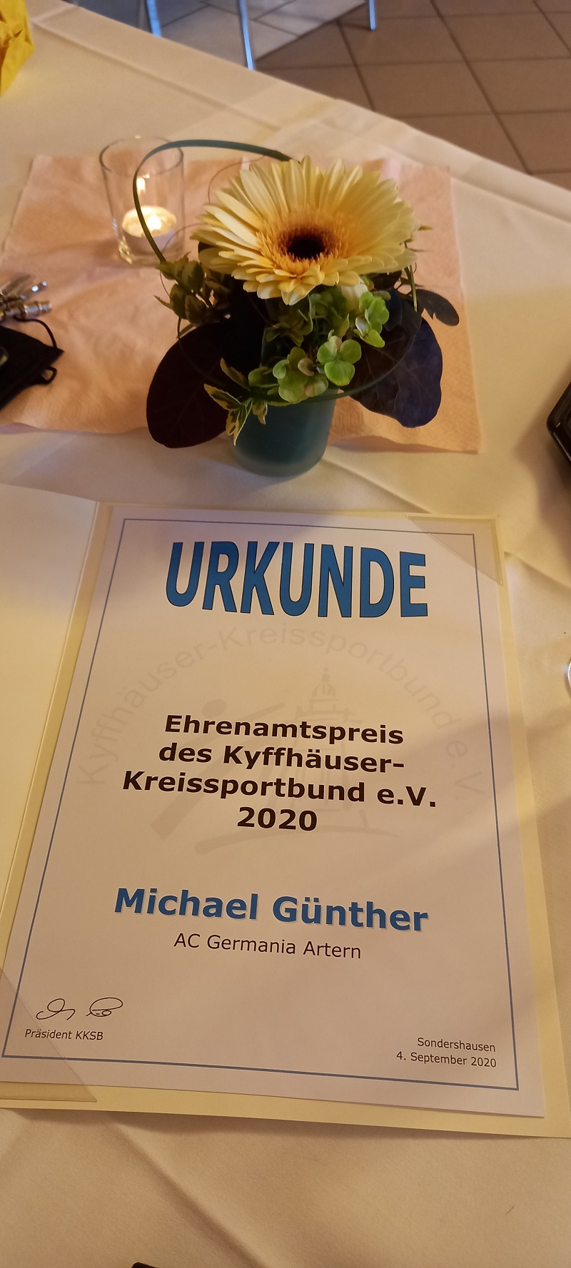 Da Michael Günther im letzten Jahr nicht mit zur Sportlergala im September mitreisen konnte, wurde der festliche Rahmen gestern genutzt und auch ihm eine Auszeichnung zu teil. Der Ehrenamtspreis des Kreissportbundes 2020 ehrte sein langjähriges Engagement für das Ringen, das Kampfrichterwesen und seinen Verein.