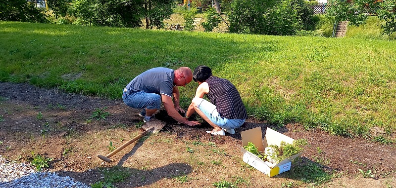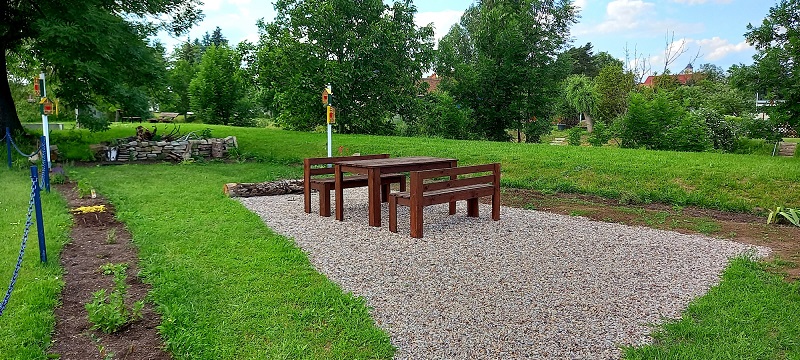 Wir sagen an dieser Stelle ganz herzlichen Dank an alle ehrenamtlichen Helfer und Helferinnen und unsere Unterstützer dieses Projektes, die alle mit Handarbeit, Materialien, Pflanzen, schwerem Gerät und Ideen dieses schöne Ecke mit gestaltet haben.