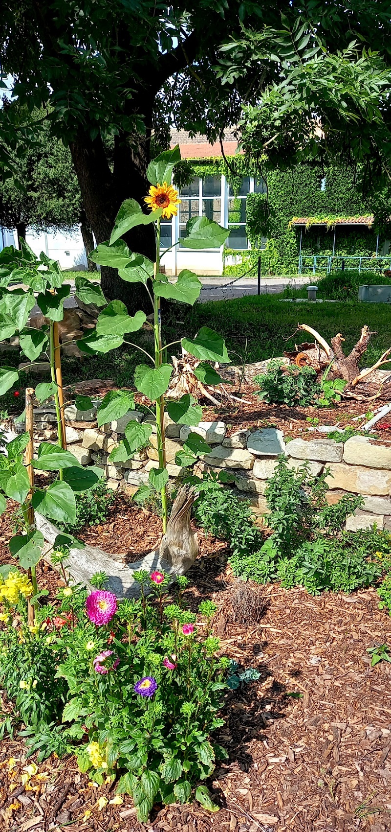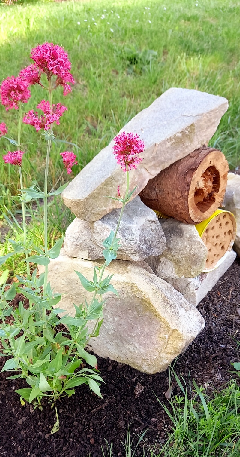 Ganz fertig wurden wir bis Ende Mai noch nicht, weitere Pflanzen fanden sich nach und nach an und natürlich musste das Gepflanzte auch erst wachsen. Auch der Sitzplatz dazwischen wird noch weiter entwickelt werden, ebenso die Unterschlüpfe für Insekten, Vögel und Co.