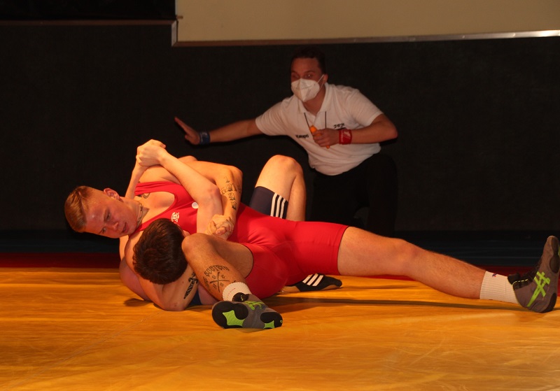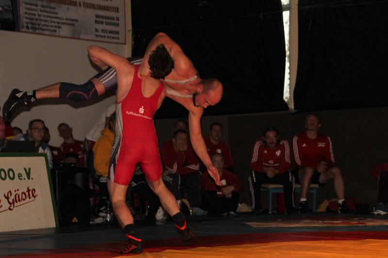 Den ersten Kampf des Tages bestritt der Gastgeber gegen die Kampfgemeinschaft Apolda/Sömmerda. Neu-Germane Ilarion Altenburg konnte bereits nach 43 Sekunden den ersten Schultersieg für Artern verbuchen. Michal Pietrzak tat es ihm nachfolgend gleich. Tim Salzmann überzeugte in einem Freundschaftskampf gegen Malte Guthmann. Da der Sportler der KG leider mit Übergewicht über die Waage gegangen war, gingen weitere 4 Punkte auf das Konto des AC. Ondrej Havelka hatte mit dem physisch sehr starken Ingo Jäger wenig Probleme und siegte verdient mit 12:0. Anuluck Eisenhardt stellte sich spontan in den Dienst der Mannschaft und rückte zwei Gewichtsklassen nach oben und dazu noch im für ihn ungewohnten freien Stil auf. Gegen Ramsan Sokuer fand er nicht in den Kampf und musste eine Schulterniederlage hinnehmen. Hier noch einmal ganz besonderen Dank an „Web“, dass er sich spontan, nach langer Trainingspause dem Kampf stellte. Der ebenfalls neu im Team aufgestellte, Mathias Jahn musste ebenso aufrücken und seinen ersten Kampf in Artern bis 86 kg bestreiten. Gegen Constantin Leon geschlagen musste er sich aber geschlagen geben. Bis 71 kg traf André Günther nachfolgend Omid Sayadi. Nach spannenden 6 min gewann Sayadi mit 7:4 Punkten. Jonas Michel hatte mit Sascha Halm keine Schwierigkeiten und verbuchte einen Schultersieg. Im letzten Kampf der ersten Begegnung zeigte Ismail Ibrahimov oder kurz Dadei genannt, seine Klasse und dominierte Rene Seydewitz technisch überlegen. Am Ende siegte der AC im ersten Kampf mit 23:10 Punkten.