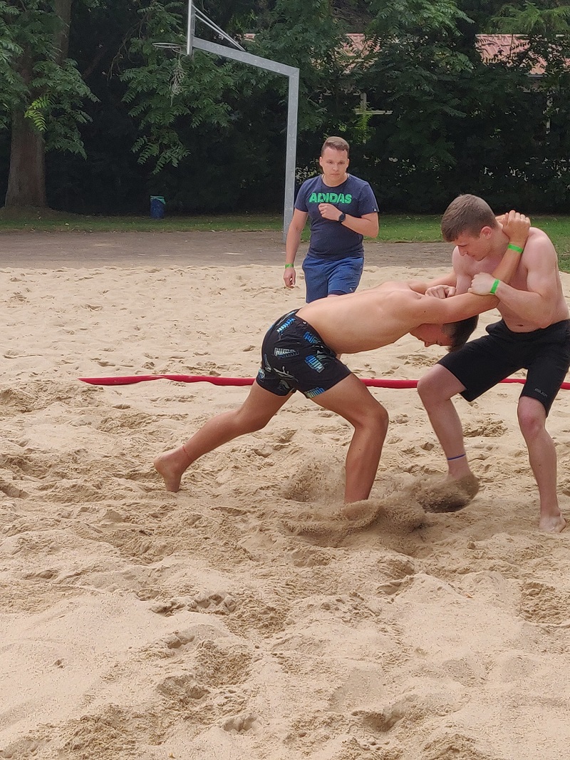 die dritte Trainingseinheit. Es wurden Trainingskämpfe im Sand nach Beach Wrestling Regeln
