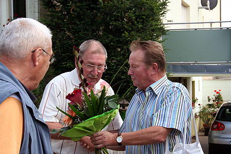 Das die alten Ringkampfveteranen in Artern nicht vergessen werden, dafür sorgt Vereinspräsident Pillep schon lange. So war es eine Selbstverständlichkeit, dass sich Gerd Pillep mit einigen Germanen am Dienstag nachmittag auf den Weg zu Vereinsmitglied Harald Michel machte, um von Herzen zum 70. Geburtstag zu gratulieren. Die Gratulanten setzten sich nicht nur aus Freunden, Wegbegleitern und Mannschaftskameraden zusammen, sondern auch ehemalige Schützlinge aus TZ-Zeiten waren zum gratulieren gekommen. Gemeinsam mit der Familie Michel verlebte man schöne Stunden, schwelgte in Erinnerungen und ließ so manch lustige Geschichte aus Vergangenheit und Neuzeit Revue passieren. Es gab viel zu erzählen, denn Harald Michel war und ist ein aktives Vereinsmitglied. In den späten 50ziger Jahren selbst als aktiver Ringer bei den Germanen eingestiegen, setzte er sein engagiertes Wirken später als erfolgsorientierter Übungsleiter im Trainingszentrum Ringen in Artern parallel zur beruflichen Fortbildung und einem Fernstudium fort und sorgte für so manchen Erfolg seiner jungen Schützlinge. Hierbei konnte z.B. 1973 für den Verein mit seiner Jugendmannschaft die begehrte Arthur-Becker-Medaille erreicht werden. Aber auch in der Leitungsebene setzte er Akzente und nahm regelmäßig im Rahmen der Spartakiadedelegation des Bezirkes Halle als Funktionär an Wettkämpfen auf DDR-Ebene teil. Weil man sein Wirken und die erreichten Erfolge in Artern und über die Stadtgrenzen zu schätzen wußte, erhielt er im Jahr 2006 als Anerkennung für seine Verdienste im Ringkampfsport die Goldene Ehrennadel des Deutschen Ringerbundes verliehen. Auf diesem Wege gratulieren nochmals alle Mitglieder des AC Germania e.V. ihrem Vereinskameraden Harald Michel zum Geburtstag und wünschen alles Gute für die kommenden Jahre.